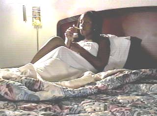The second half of the video shows Andrea as the kind of woman many fantasize about. She wakes up in bed, and immediately reaches for her cigarettes, lighting up as soon as she opens her eyes. As she wakes up more, she decides that she'd rather not get out of bed just yet - she reaches again, this time for her vibrator, and smokes several more cigarettes as she works herself to a noisy climax!