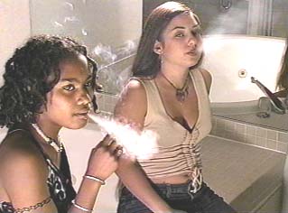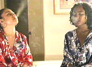 "Best Friends 1" begins with a standard "interview" scene, but a lot of the dialogue was removed (because it got TOO personal). The dialogue, most of it about smoking, continues through the rest of the vid, with the girls sharing two cigarettes while Mina helps Coco with her makeup, and then as they relax outdoors on their balcony and in the bedroom.