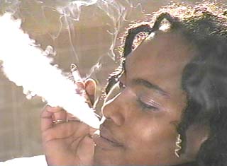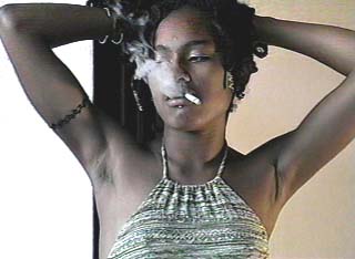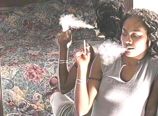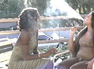 In "Introducing Coco and Mina," they alternate scenes, shot both indoors and outdoors. And even though only one girl is on camera at a time, the duo talks about smoking in about half the video. Mina shows a nice mix of thick cone exhales with some frenches, small snaps and dangling. Coco's style is unique; at first you may think that she's not inhaling some of her drags, but as you see how much residual smoke comes out of her, you realize that she's direct inhaling, and may have developed her style from having grown up around ganja. She shows straightforward and drifting exhales, wafts, nose exhales and some dangling as well.