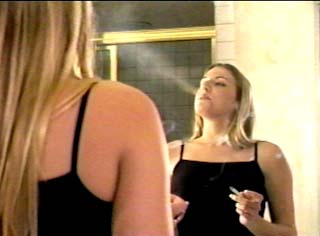 The pair plans an evening out, and we see Christina smoking while putting on her makeup. Then comes a scene that's also often requested by those who love women who can hardly ever go without a cigarette: we watch Viktoria smoking while taking a shower! Finally, the two chat while having another cigarette, as Christina finishes her makeup and Viktoria dries off and puts on lotion.