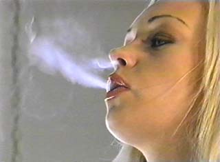 We've been getting lots of requests for new videos featuring "name" adult models and porn stars who smoke --- so here you go! Martina Warren is an incredibly hot, internationally known 19-year old model, who was the cover model and centerfold in the January, 2003 issue of Penthouse. She's also a devoted smoker, smoking 1-2 packs a day since her early teens! And we're delighted that she agreed to shoot a smoking video exclusively for Second Hand Smoke! The video opens with Martina sunbathing in the backyard, in a skimpy bikini, while enjoying a cigarette. And right from the start, it's obvious from her cheek-hollowing drags and the satisfied look on her face, that this is a girl who absolutely loves her cigarettes! Next, Martina moves inside to show her glamorous side; wearing a sexy black dress that shows lots of skin, she smokes one cigarette while having a glass of wine. She then lights a second as she slowly drops the dress to smoke nude and very sensuously! Finally, Martina chain-smokes while posing for us on top of the pool table, topless and in incredible leather pants and heels - really sexy stuff! Even though she's only 19, there's no doubt that Martina has been an accomplished smoker for many, many years - with fabulous cheek-hollowing drags, and thick mouth and mouth/nose exhales, as well as a slight natural snap and a few dangles and double drags thrown in - you can tell it's her natural smoking style developed over years of smoking! And multiple cameras let you see it from every angle! Whenever you see a gorgeous model on the cover of a major magazine, the first question you always ask is: "Does she smoke?" Well, here's the proof --- don't miss it! |
